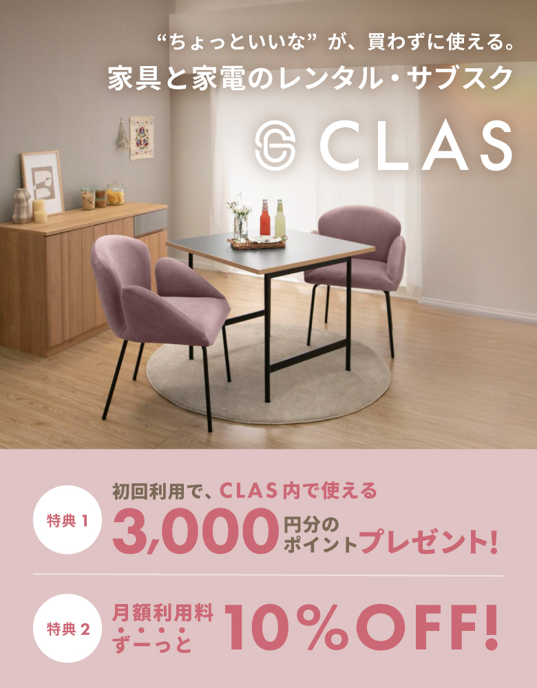 CLASとは家具と家電がレンタルできるサブスクリプションサービス。