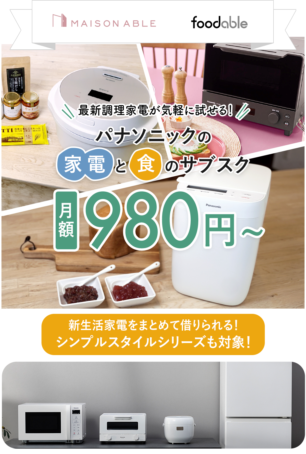 foodable(フーダブル)は、パナソニックがお届けする家電と食のサブスクサービス。