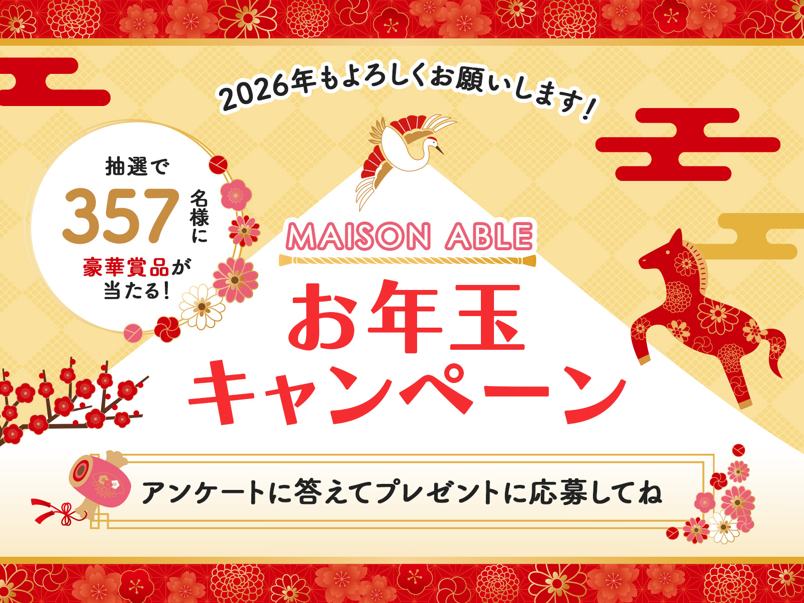 MAISON ABLEお年玉キャンペーン2026へご応募いただく前に、必ず本応募規約をご確認ください。本規約に同意いただけない場合、本キャンペーンにご応募いただくことはできません。予めご了承ください。なお、本キャンペーンにご応募された場合、本規約に同意したとみなします。